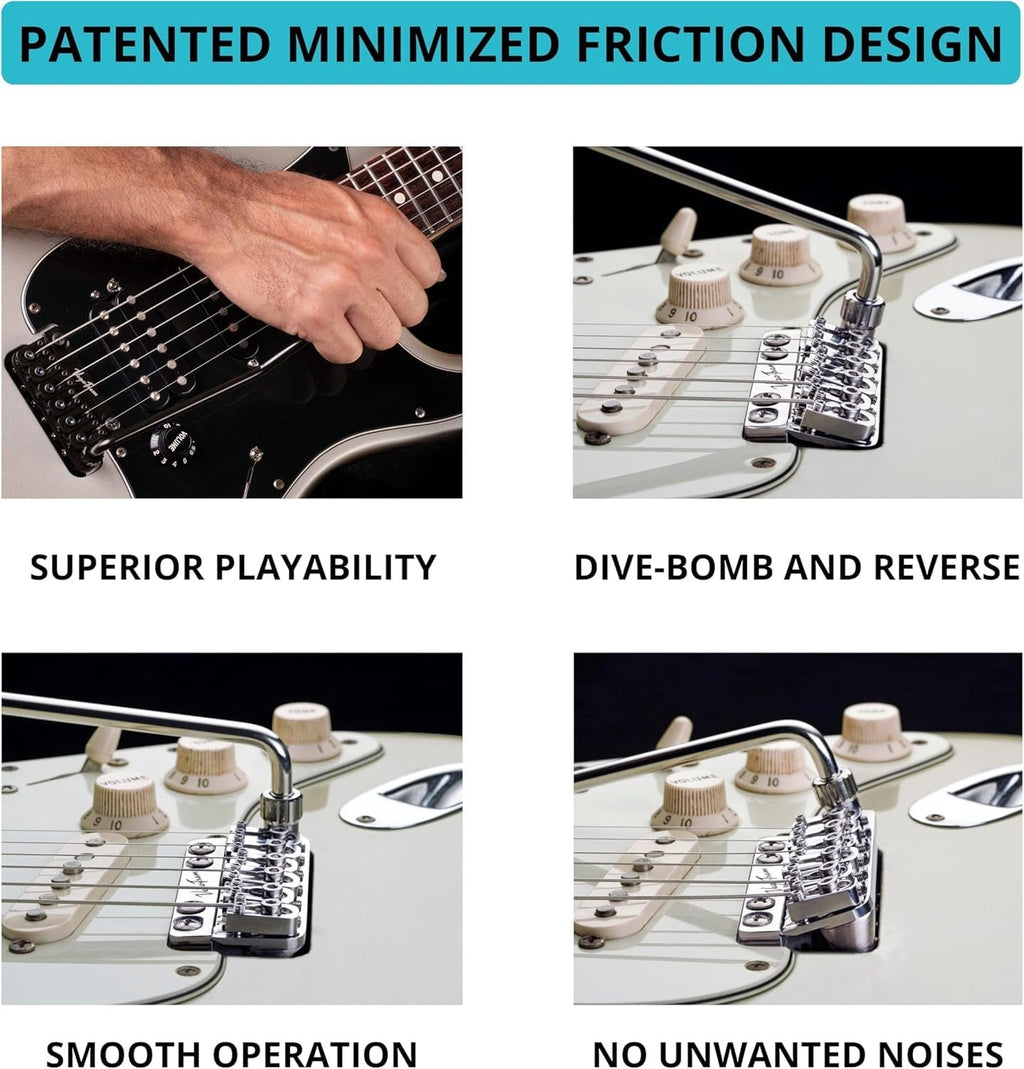 Meet the VT1 Special—the same legendary VT1 architecture you trust, now voiced with a premium brass block at its core. It drops into any Strat-style 6-screw tremolo route with no drilling, sanding, or permanent mods, preserving the feel, stability, and wide expressive range players love—while adding the warm, musical character brass is famous for. Installation is straightforward at home, and the included high-to-ultra-low tension springs let you dial in the exact feel for your technique. For best performance, we recommend low-friction nut solutions and locking tuners (as with the original VT1 approach). The VT1 Special keeps your guitar intact, stays rock-solid in tune, and delivers smooth, quiet, precise tremolo travel—now with its own distinct timbre thanks to the brass heart. Finished in high-quality stainless steel with a Black top surface (this listing), Right-handed. Pack includes tremolo block and arm, fulcrum plate with fixing screws, springs, and Allen keys.Fits any stratocaster-style guitar with preinstalled tremolo (6 screws)No guitar modifications requiredFits perfectly into the tremolo original cavity, no extra drillholes requiredEasily installed at home, everything needed for installation is includedEasy set up and re-string, low maintenance, no microtunersSuperior tuning stabilitySmooth and precise tremolo action, no unwanted noises