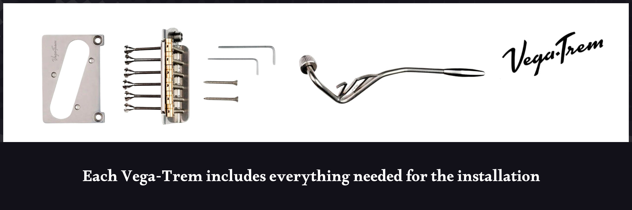 Vega-Trem is a game-changing, high-quality guitar tremolo that will fit any Strat (VT1) or Tele (VT2).