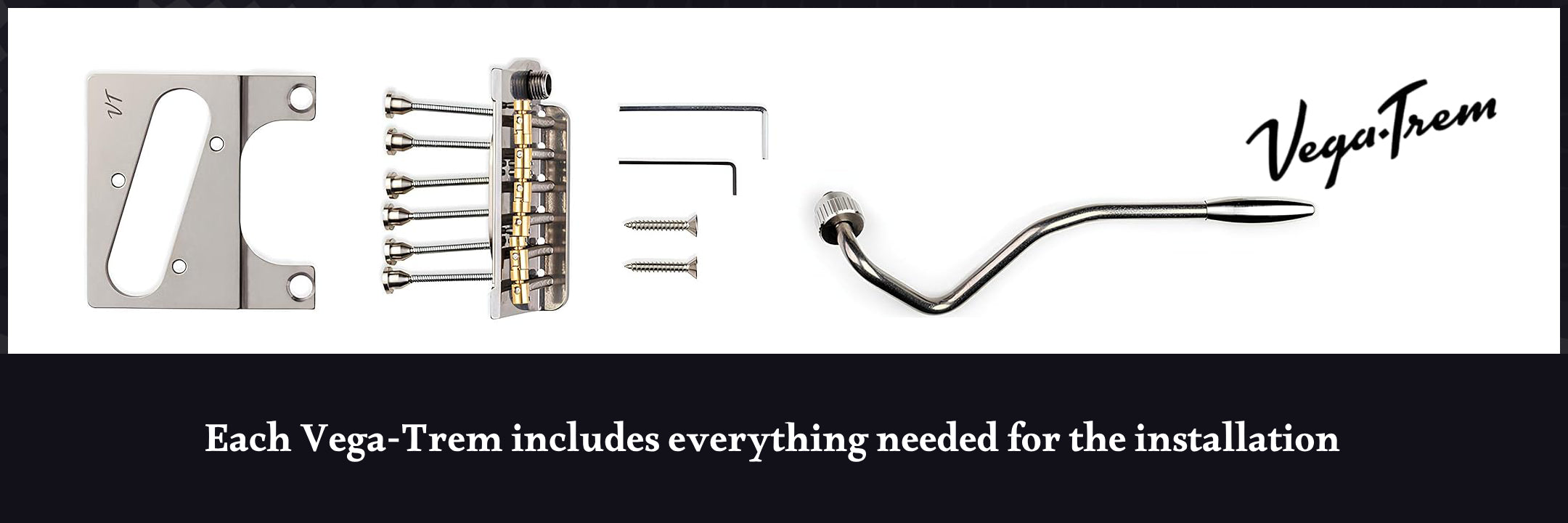 Vega-Trem is a game-changing, high-quality guitar tremolo that will fit any Strat (VT1) or Tele (VT2).